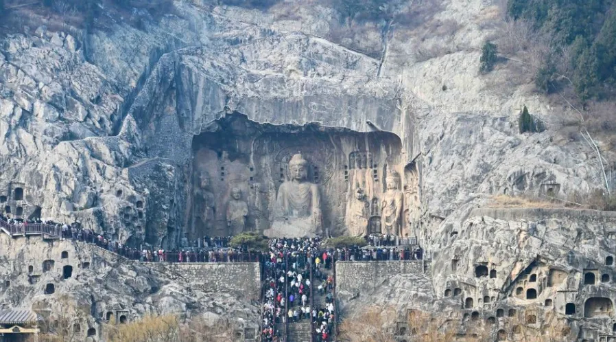 奇怪的是,这群韩国游客的行踪完全避开了那些常规的打卡点。那个闻名天下的少林寺,她们似乎并没有兴趣去看武术表演;那个中国第一古刹白马寺,她们也只是匆匆一瞥。相反,她们像是一群来“朝拜女王”的信徒,一头扎进了龙门石窟的卢舍那大佛脚下,或者蹲在牡丹园里,对着一朵开得肆无忌惮的牡丹花发呆。