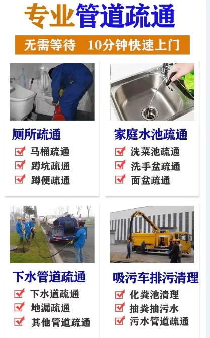 🔄 疏通服务:下水道、马桶、蹲厕、地漏、下水管、脸盆、菜盆、墩布池、坐便器、小便池、主管道。