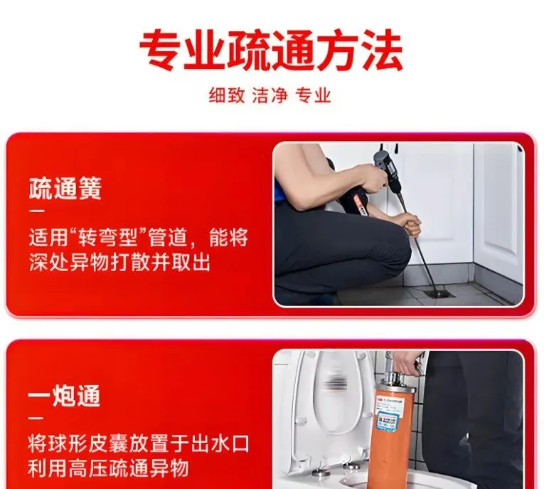 ⚡ 疑难疏通:快速疏通因装修掉入水泥、沙子或头发等造成的下水道堵塞。