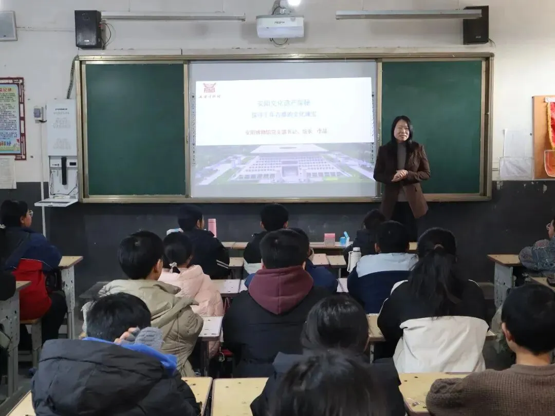 1月21日下午,安阳博物馆馆长李晶走进滑县焦虎镇第一中心小学,以“安阳文化遗产探秘——探寻千年古都的文化瑰宝”为题,为同学们带来一堂生动的文化课。