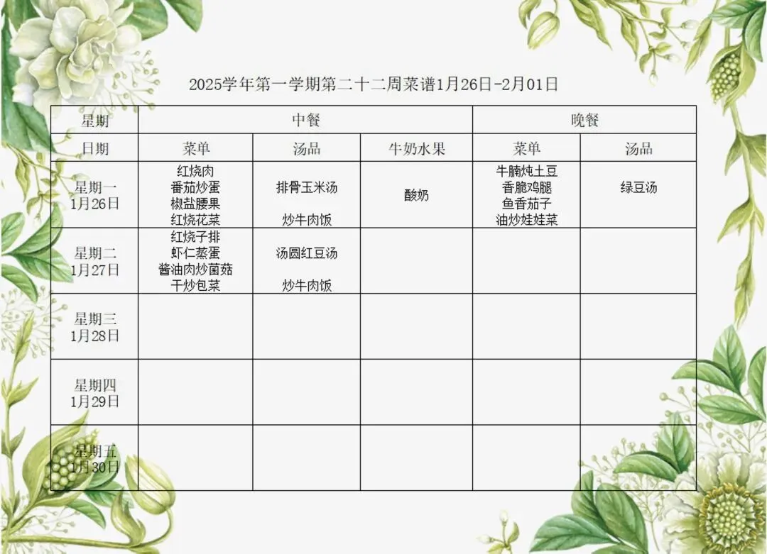 >安阳实验中学2025年秋季第二十二周学生菜谱