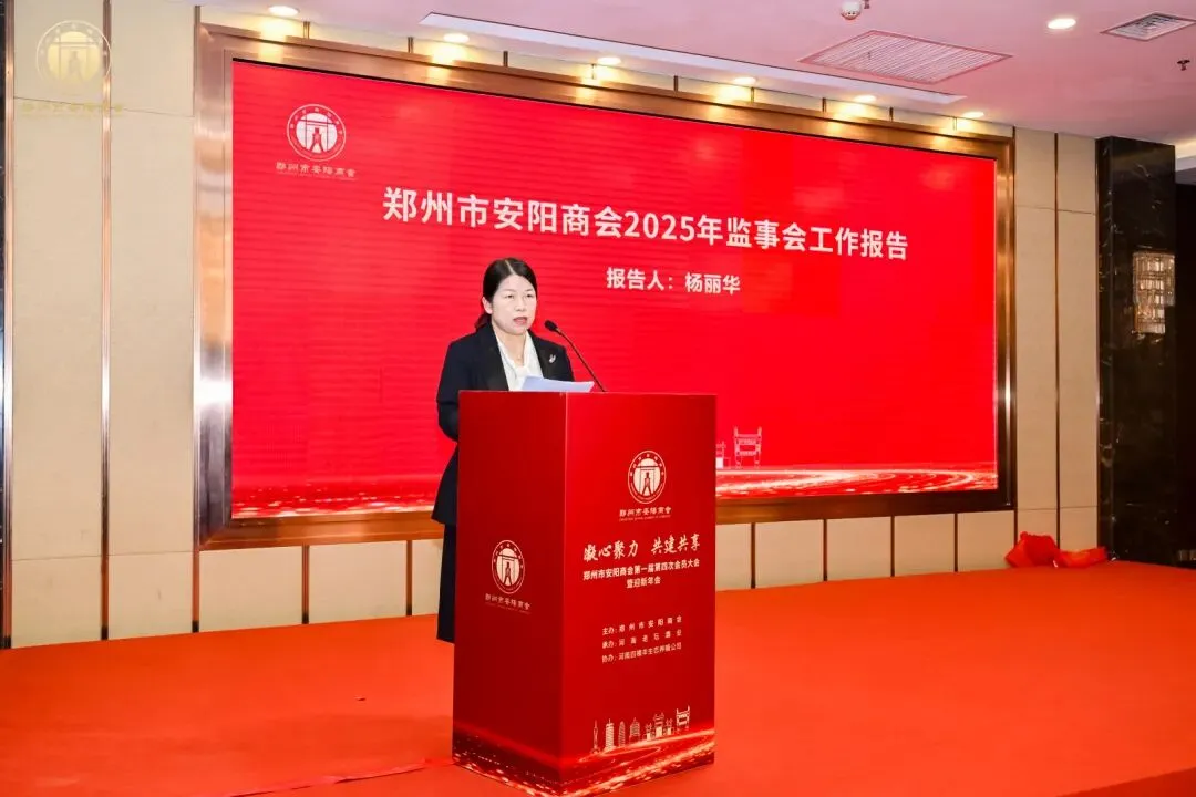 监事长杨丽华作《郑州市安阳商会2025年监事会工作报告》,聚焦会员权益维护与商会规范运营,重点汇报了财务监督与履职监督工作。