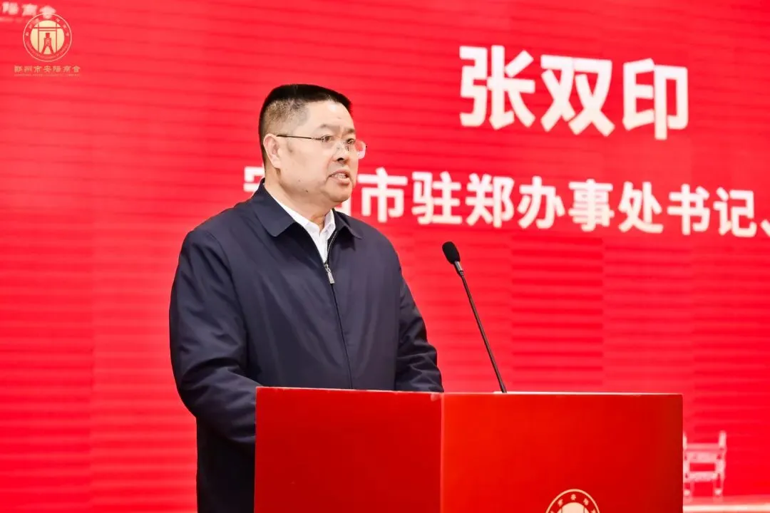 安阳市政府驻郑州联络处主任张双印向与会乡贤致以问候与感谢,肯定了商会平台的桥梁作用,分享了安阳最新发展步伐,号召乡贤返乡投资、助力家乡建设。