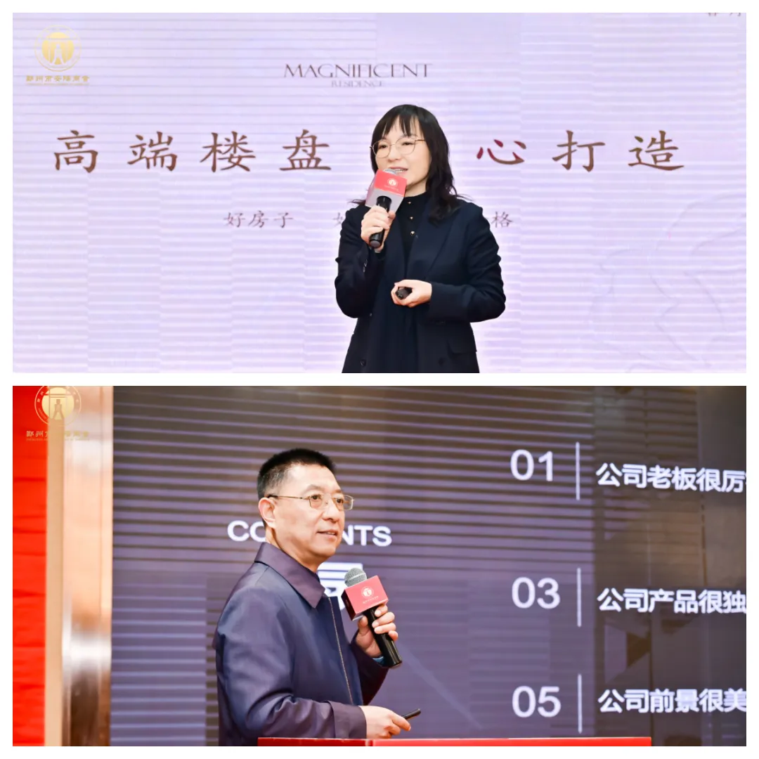 (河南绿波置业有限公司总经理樊荣华、河南老坛酒业有限公司副总经理张永贺分别上台推介)