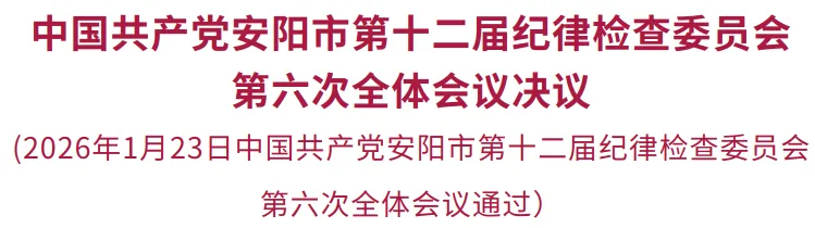 中国共产党安阳市第十二届纪律检查委员会第六次全体会议,于2026年1月23日在安阳举行。出席全会的有市纪委委员32人,列席150人。