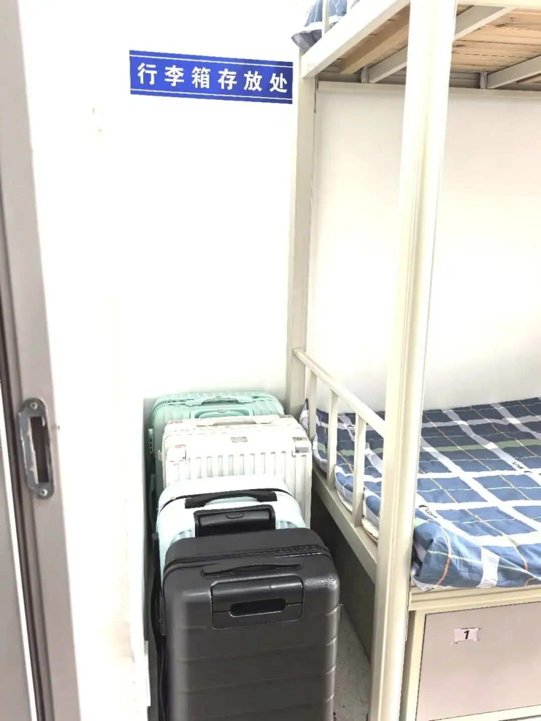 行李箱需放置于宿舍指定储物区域,摆放时做到横竖对齐,表面无灰尘、无杂物覆盖。