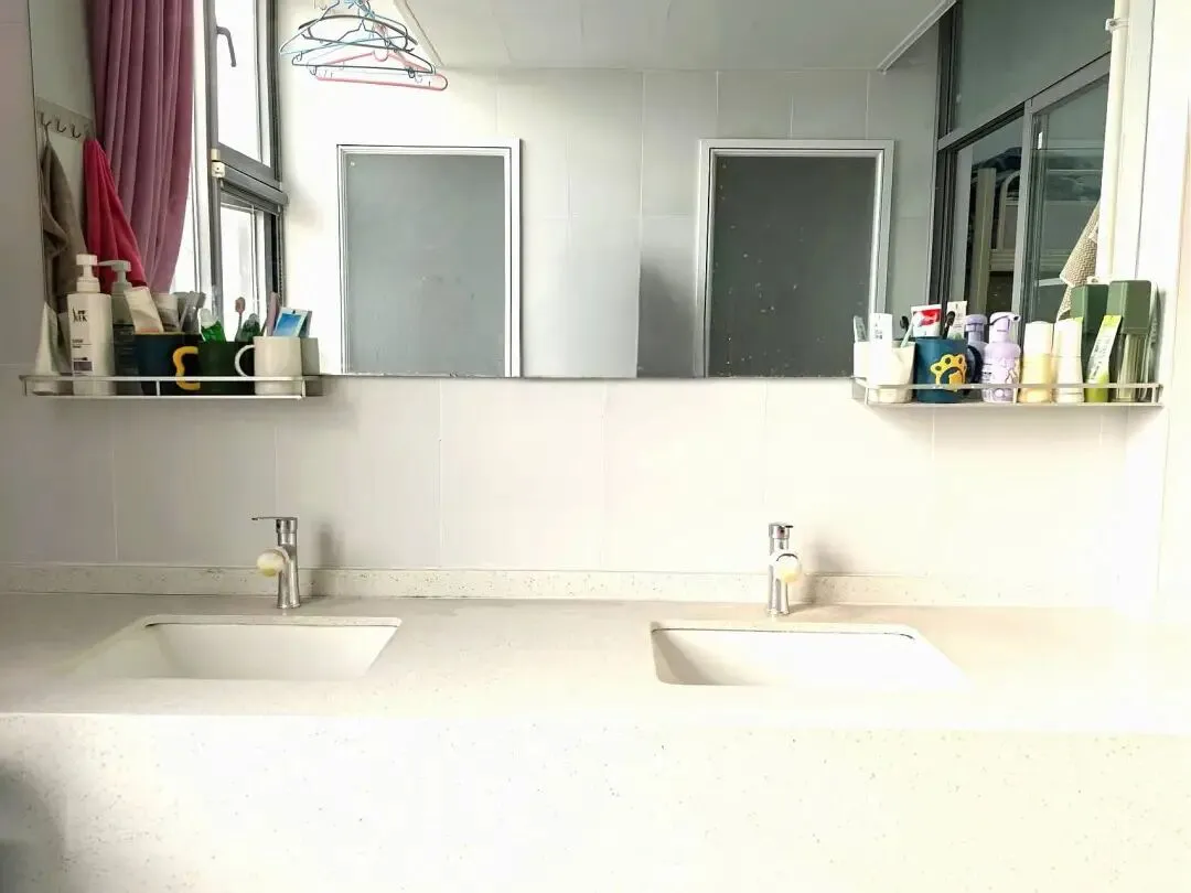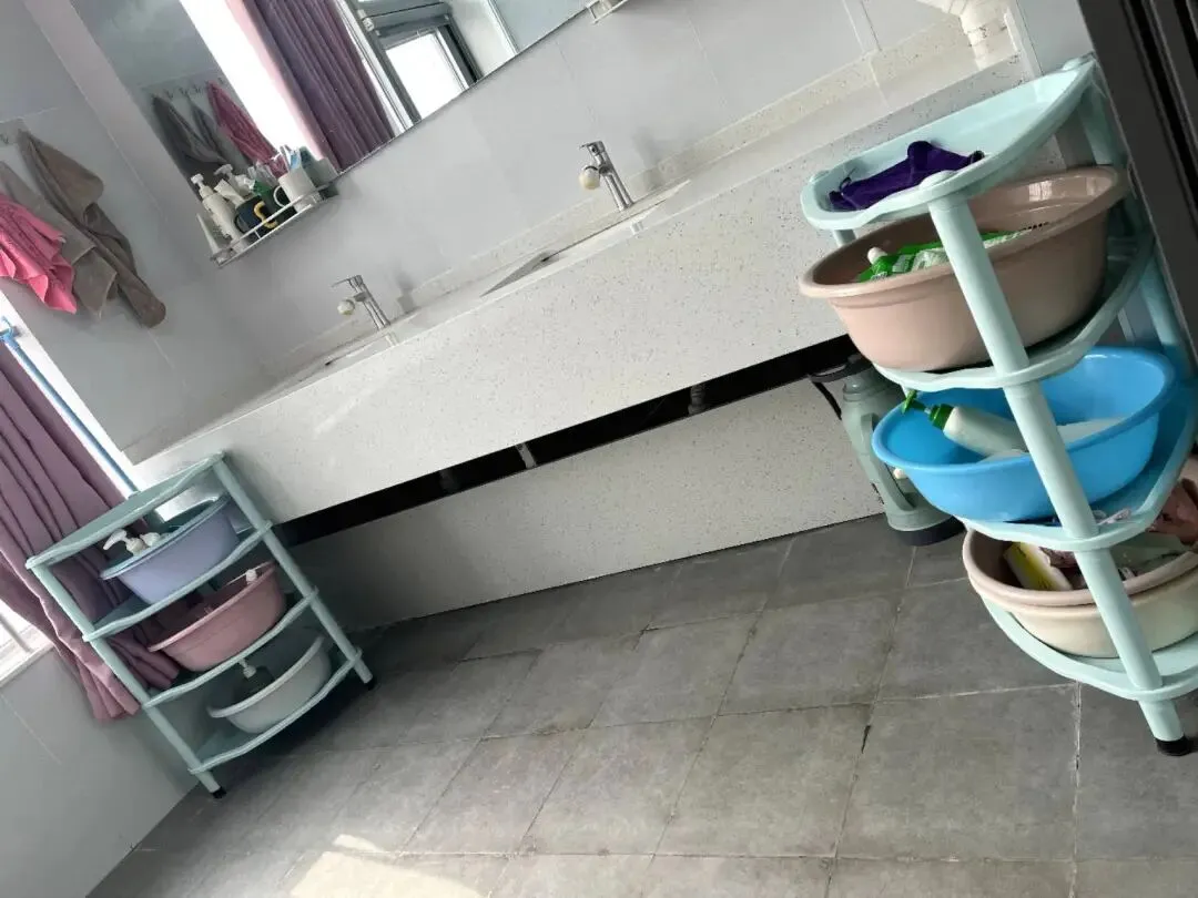 卫生间、洗澡间地面无积水、无污垢,洗手池、便池洁净无异味,墙面无污渍、无乱贴乱画,废纸篓及时清理,无垃圾溢出,阳台、卫生间、洗澡间玻璃门干净无污渍,整体保持干燥通风。