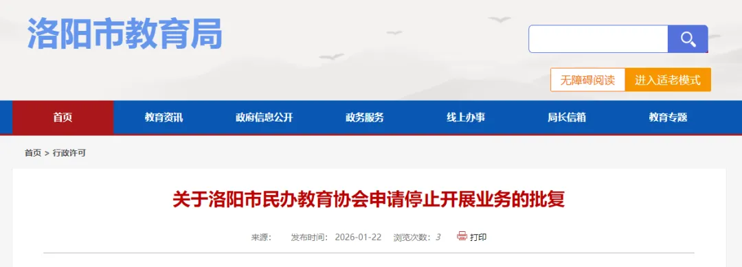 关于洛阳市民办教育协会申请停止开展业务的批复
