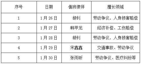 5.本周职工服务中心律师值班表: