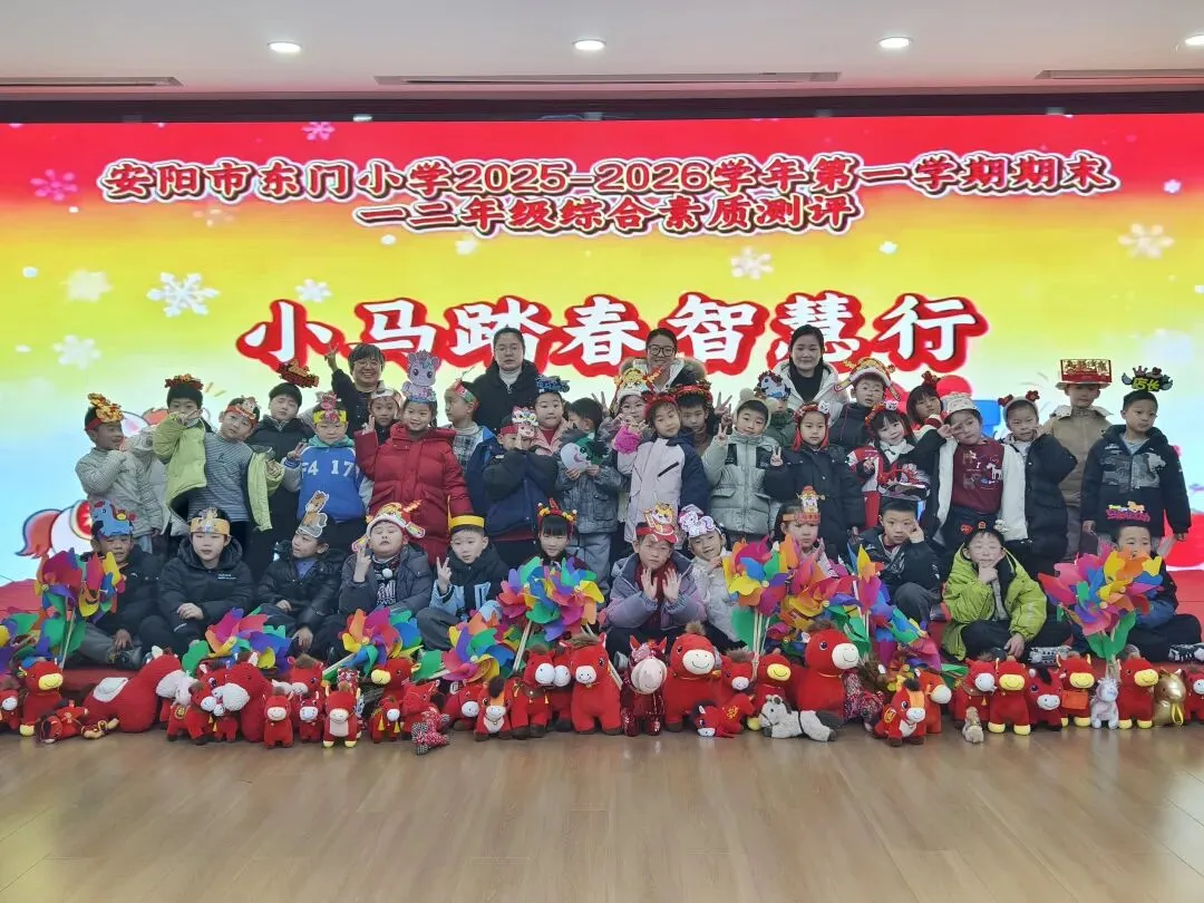 不以纸笔定能力,虽无笔墨也飘香。为贯彻落实国家“双减”政策精神,减轻学生学业负担,全面评估和促进学生的综合素养发展,2026年1月23日,安阳市东门小学一年级开展了以“小马踏春智慧行”为主题的无纸笔测评闯关活动,让孩子们在趣味活动中巩固所学知识,体验学习成功的喜悦。