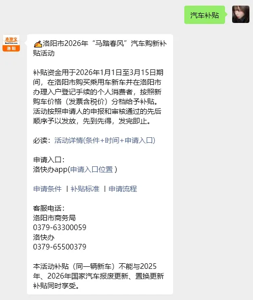 即可获得洛阳汽车补贴活动汇总