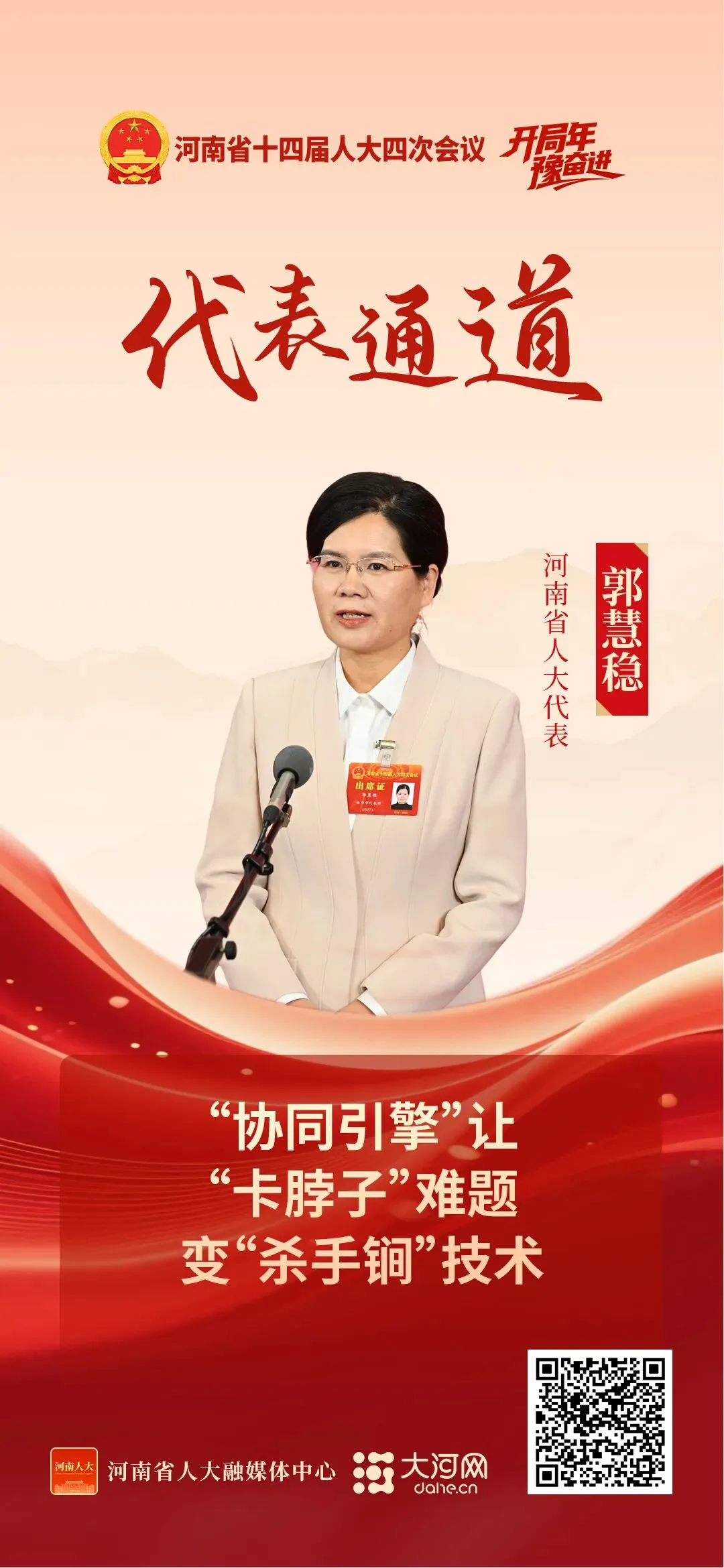“材料是制造业的基础。通过创新驱动产业发展,是有色金属材料行业的必经之路。”1月26日,在省十四届人大四次会议“代表通道”上,省人大代表、中铝洛阳铜加工有限公司首席工程师郭慧稳结合自身一线科研经历,分享了如何将科技创新转化为驱动产业发展的硬核动力。