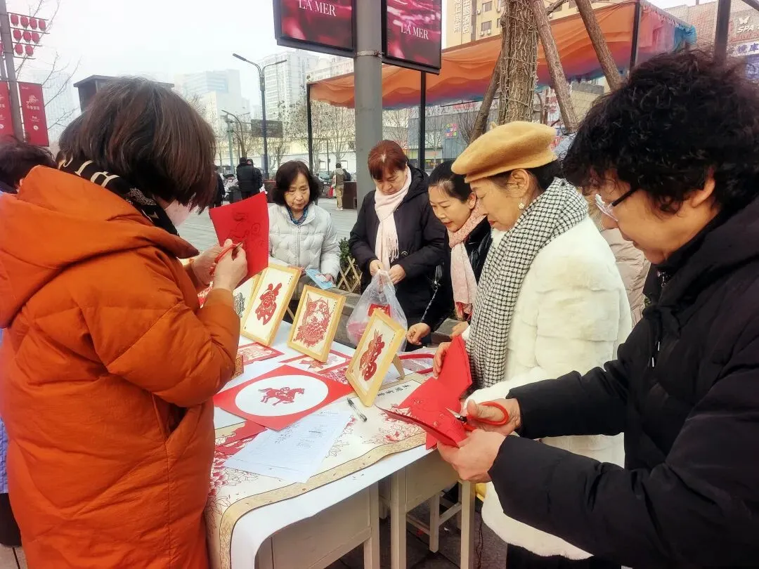 活动现场,研究会的老师们现场示范教学,从对折技巧到纹样设计,手把手指导市民剪出生肖骏马等吉祥作品。红纸翻飞间,一张张承载新春期许的剪纸跃然指尖,既有传统民俗的厚重底蕴,又融入马年奋进的时代寓意,让市民在动手实践中感受非遗魅力与节日温情。