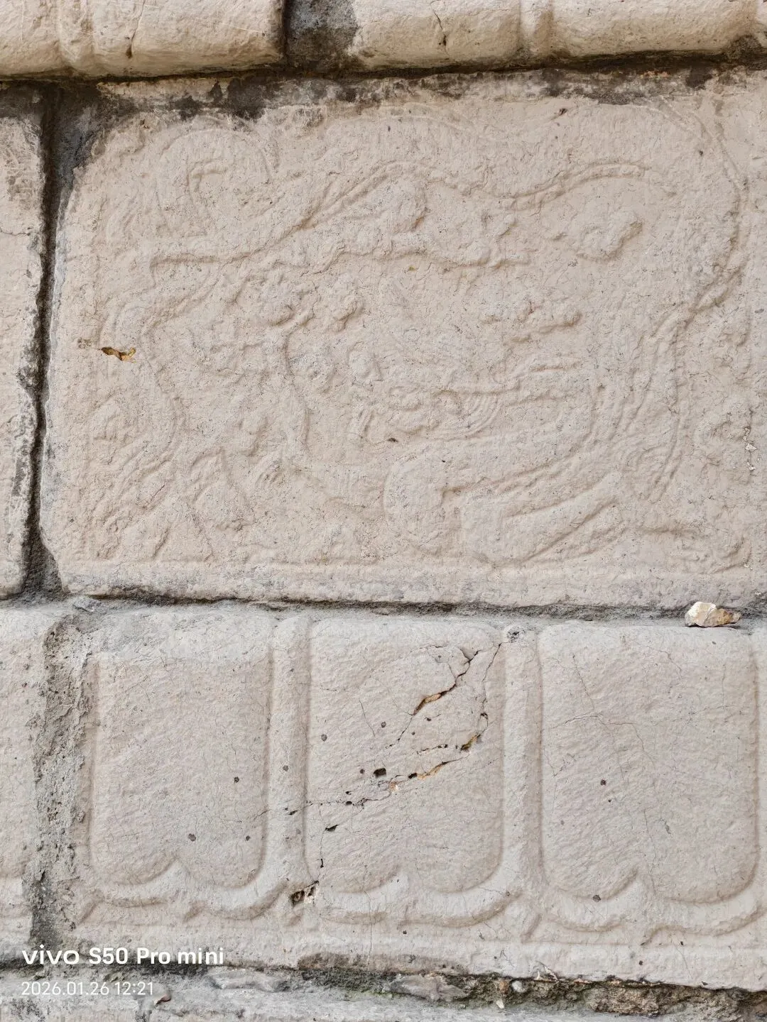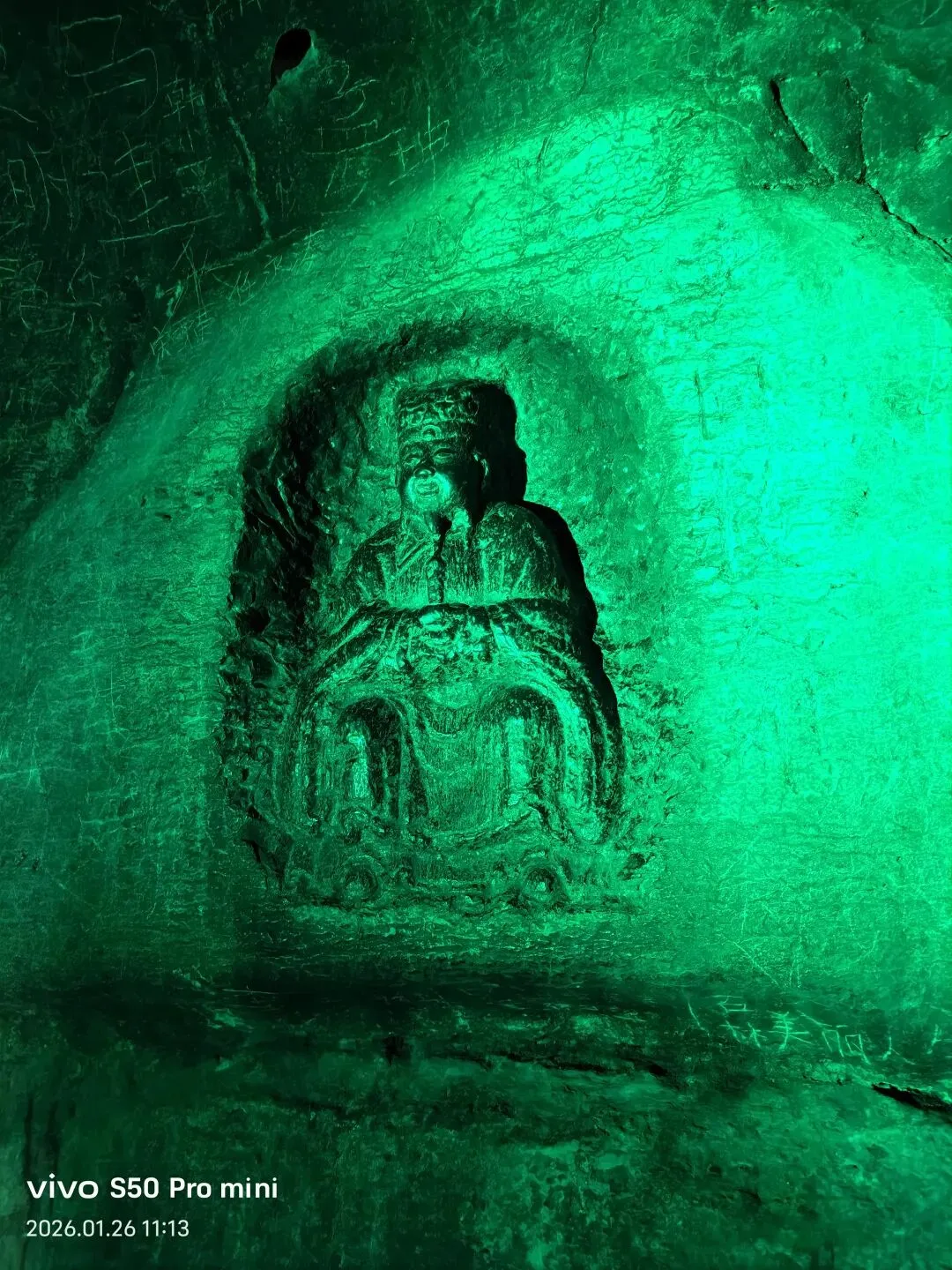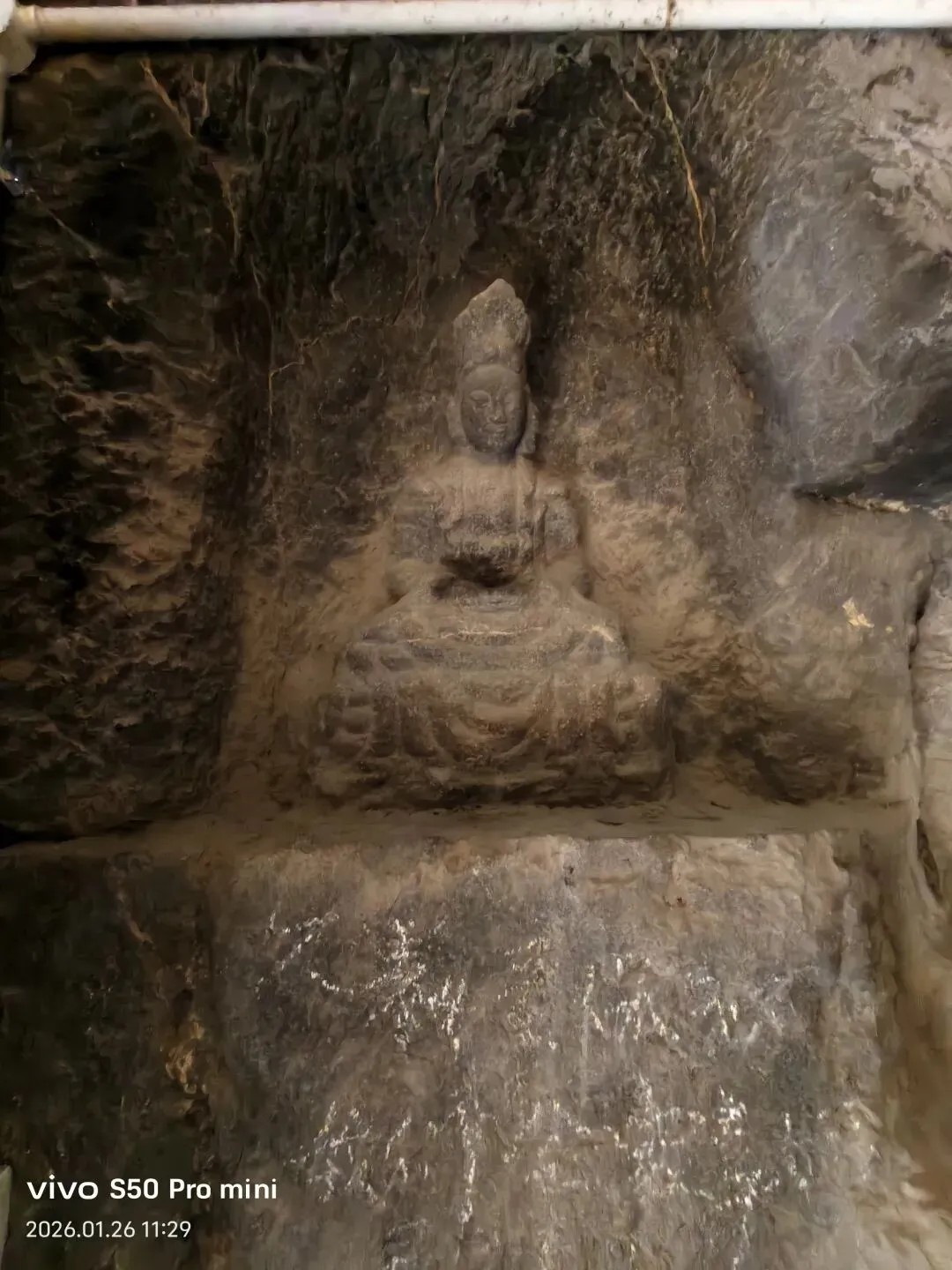 龙母殿为一座依托山壁开凿的石窟,坐北面南,仿木结构。窟门外两侧浮雕金刚力士,头戴宝冠、面部饱满,虽为明清作品,但姿态挺拔,不失为佳作。