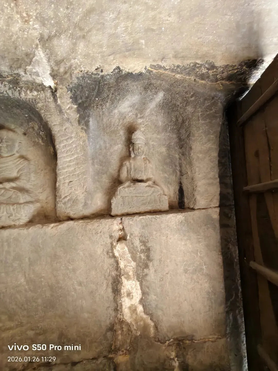 石窟内东西墙壁浮雕,为小型佛造像和菩萨造像。下部浅浮雕诸天,人物面部依然清晰可见。