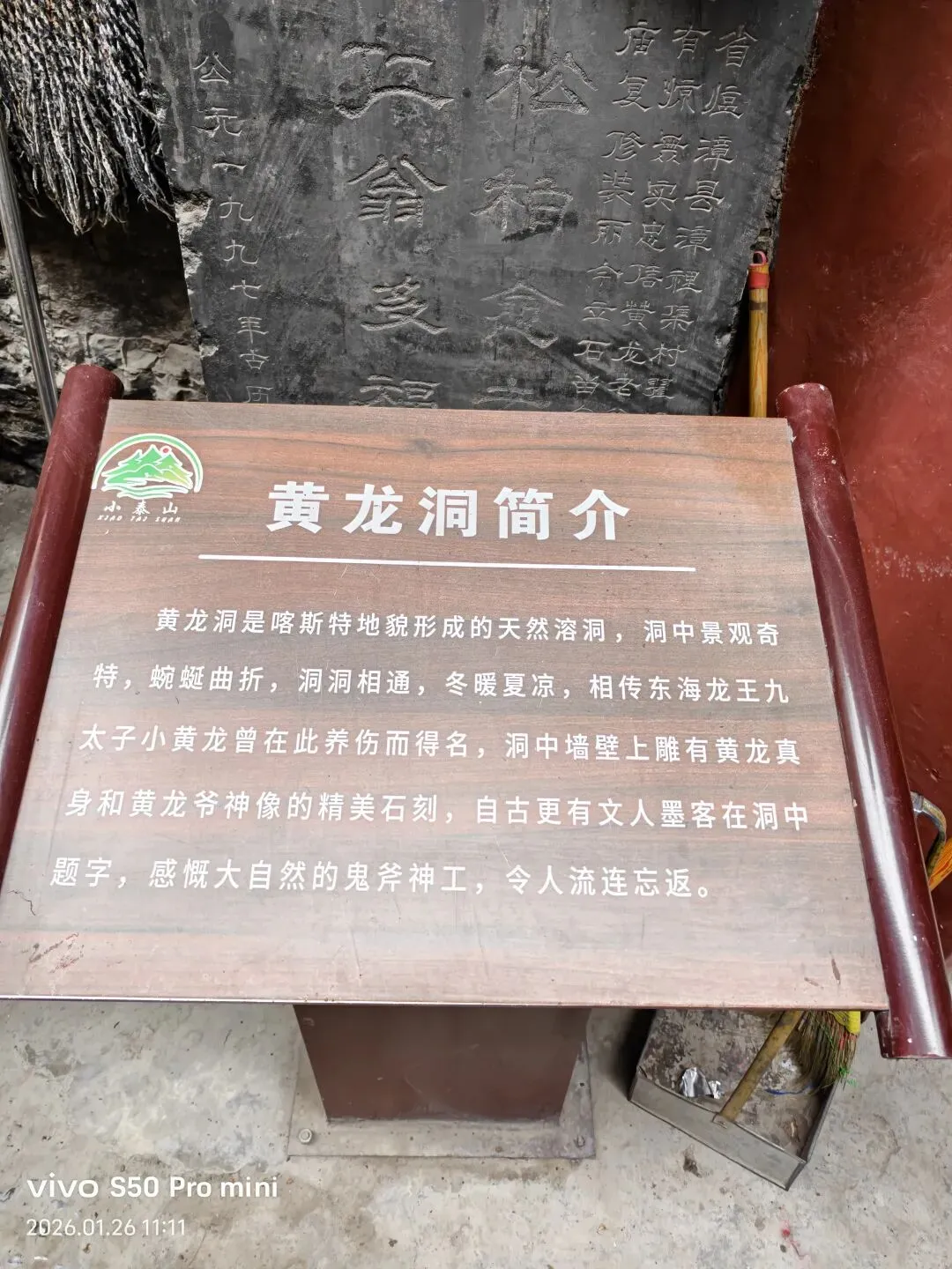 黄龙洞庙位于安阳善应镇黄阳山麓,是一处集喀斯特天然溶洞奇观。黄龙洞庙始建于明代,清乾隆年间重修,1971年被公布为县级文物保护单位,因山上仿泰山建造碧霞元君行宫等建筑;故称“小泰山”。黄龙洞原来叫黄阳山,传说东海龙王九太子(小黄龙)因受伤疗养,其父东海龙王选中了黄阳山这块风水宝地!寺庙集儒释道三教建筑,依山而建,风景秀丽!