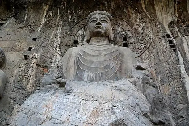 站在奉先寺的卢舍那大佛前,所有的语言都显得苍白。那尊高17米的佛像,眉眼弯弯带着盛唐的雍容慈悲,夕阳掠过佛的鼻梁,在石壁上投下柔和的阴影。同行的孩子仰着头问:“妈妈,他们为什么要把佛刻在石头上?”我答不上来,只知道,当七朝工匠用凿子一遍遍敲打着山崖时,刻下的何止是佛像,更是一代人的信仰与执着。古阳洞里的龙门二十品,碑文字迹斑驳却力道十足,书法的墨香仿佛穿透了石头,飘在伊河的风里。