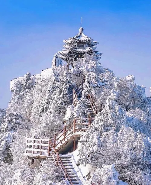 从郑州开车过去一个小时,早上出发中午就能到,门票80块,索道另算,但建议别坐索道,慢慢爬上去,因为你要看的就是这个"慢慢"的过程,看雪怎么化,看光怎么移动,看自己的呼吸在冷空气里变成白雾然后散掉,这些东西坐索道你全错过了。