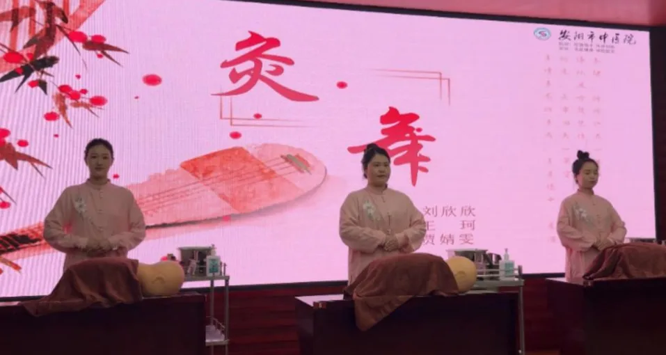 团委书记王朋带领团队带来灵动的中医灸舞表演,将艾灸文化与舞蹈艺术融合,展现中医之美。
