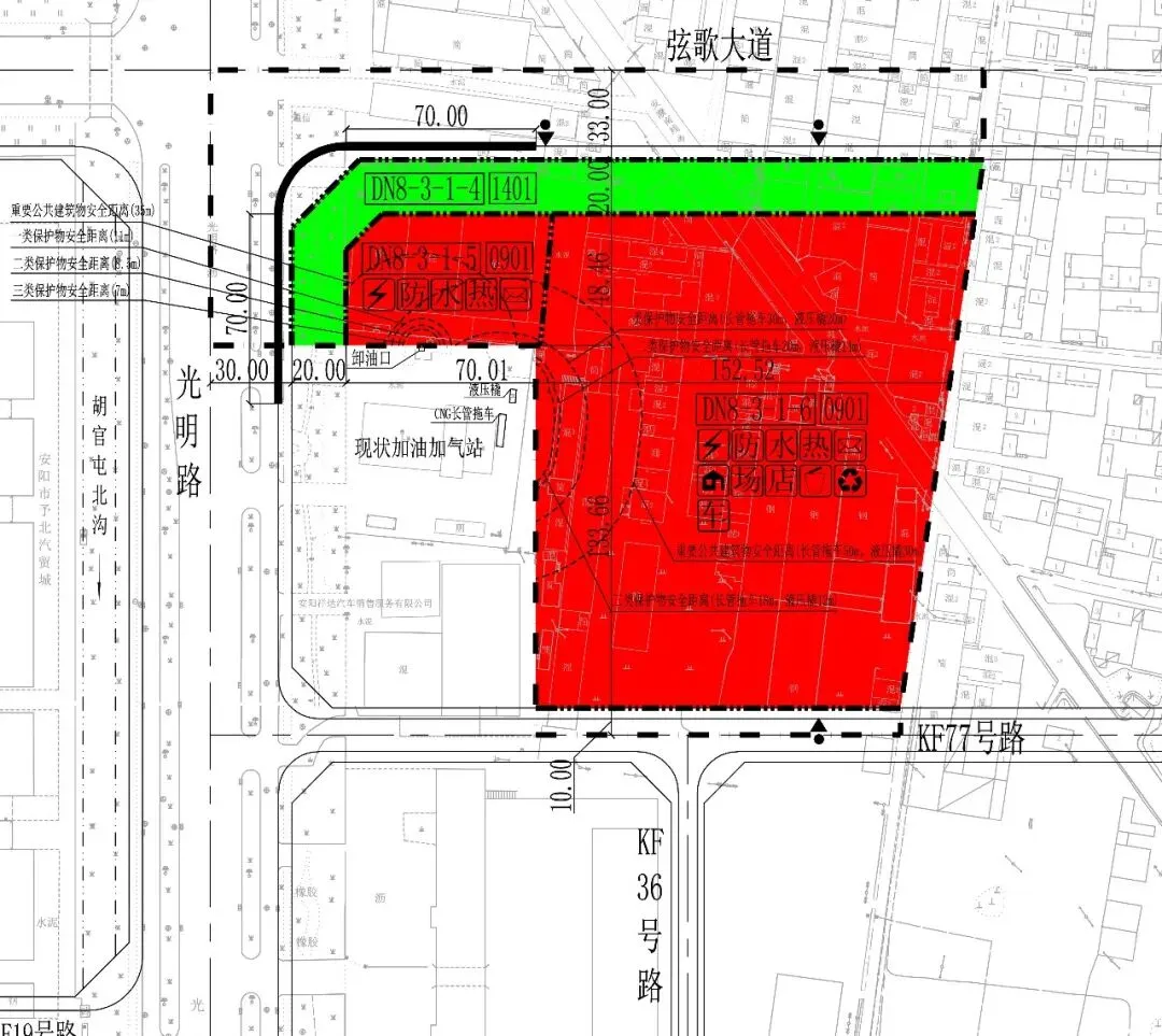 科学布局城市基础建设,能有效带动区域经济增长以及唤醒区域消费活力。本月,安阳东南区域大型商业地块DN8-3-1-4等地块控制性详细规划已出,该地块位于安阳光明路与弦歌大道交叉口东南,建设规模为4.92公顷,看看在你家附近吗?图中红色部分为商业用地,绿色部分为公园绿地。DN8-3-1-5商业用地容积率<2.00,建筑高度不高于24米,建筑密度≤40%,绿地率≥25%。DN8-3-1-6商业用地容积率<2.50,建筑高度不高于60米,建筑密度≤40%,绿地率≥30%。