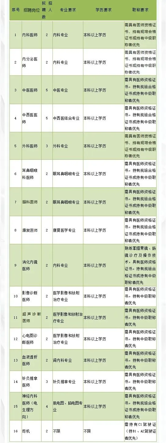 根据医院发展需要,进一步加强人才梯队建设,现面向社会招聘卫生专业技术人才。