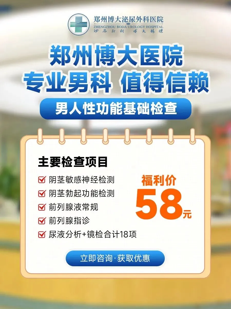 阴茎供血不足不仅影响性生活质量,还可能是身体发出的 “健康预警”—— 背后可能隐藏着高血压、糖尿病等慢性疾病。及时就诊,既是解决勃起问题,也是排查全身健康隐患。郑州博大男科医院诊疗优势