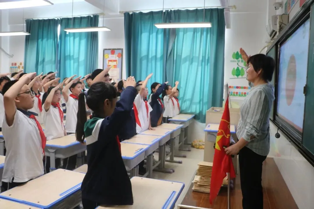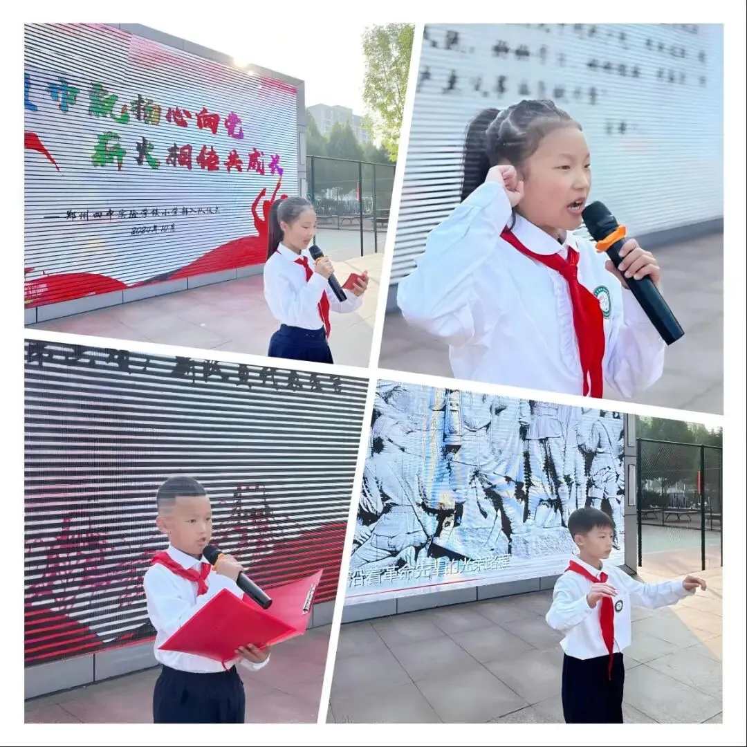 习近平总书记常用“扣好人生第一粒扣子”教导青少年打牢思想基础,树立正确价值观,走好人生第一步。为教育学生继承和发扬中国少年先锋队的光荣传统,10月11日,郑州四中实验学校教育集团举行了以“星星火炬 闪耀征程”为主题的庆祝第75个建队节主题队日活动暨新队员入队仪式。