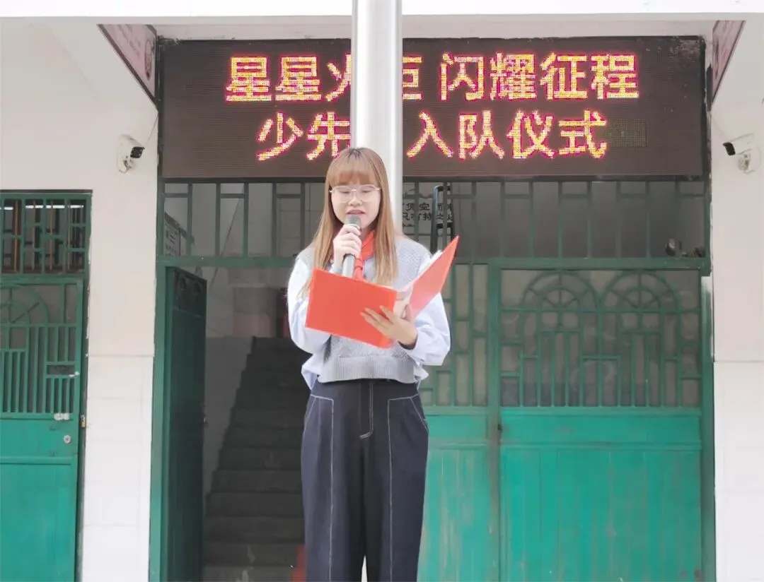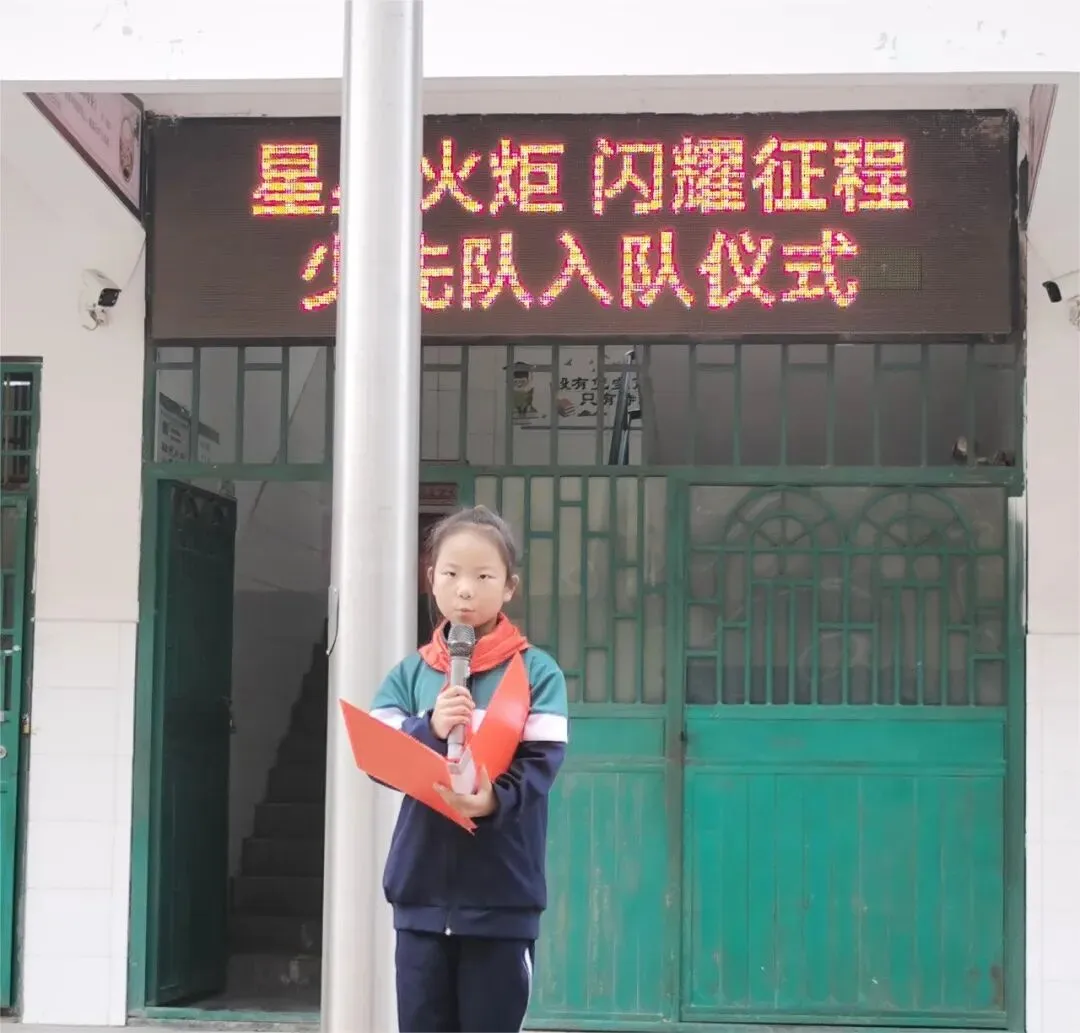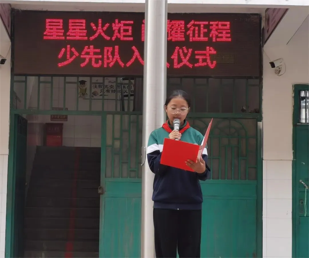 伴随着雄壮激昂的出旗曲,旗手目光坚定,手举鲜艳的队旗齐步入场,入队仪式拉开了帷幕。优秀少先队员代表为新队员戴上了鲜艳的红领巾,飘扬的红领巾映衬着一张张朝气蓬勃的笑脸,也引领着新队员不断前行,肩负起祖国的希望。活动中,学校领导表达了对新队员的祝贺,勉励他们从小听党话,跟党走,争做新时代好队员,努力成长为担当民族复兴大任的时代新人!