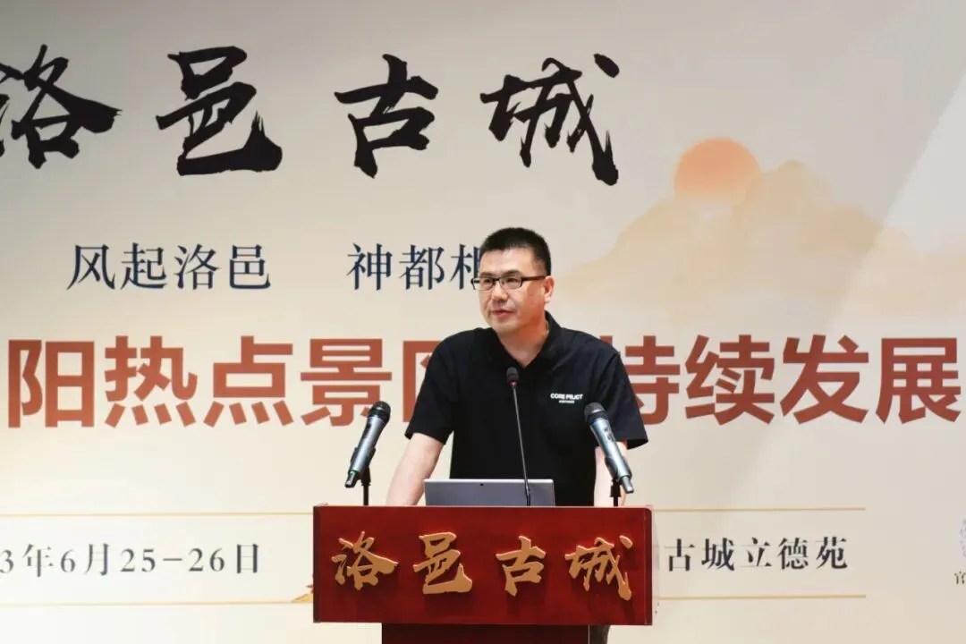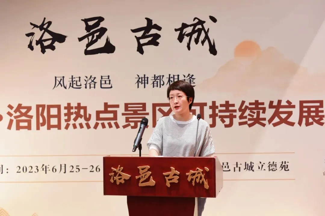 中国文物交流中心文创处处长王海燕在致辞中向活动的成功举办表示热烈祝贺。她指出,“崤函帝宅,河洛王国”,以洛阳为中心的河洛文化和河洛文明是中华民族文化的核心和源头,构成华夏文明的重要组成部分。在洛阳老城,汉服已经从博物馆的展柜中走入现今人们的生活中,成为大街小巷上的一道亮丽风景。今年五一假期,无论徜徉在应天门、天堂明堂,还是穿梭于洛邑古城、东西大街、十字街,甚至是乘坐公交、地铁等公共交通,都会看到成群结队身着汉服的身影,大家身着汉服解锁属于自己角色扮演,整个城市已成为大型沉浸式剧本娱乐场馆。中华传统服饰是中华民族的物化象征,欣赏中华传统服饰就是欣赏中国历史、中华文化,体会中华民族五千年以来对美好、对文明的追求和探寻。要深入贯彻落实习近平总书记关于“让文物活起来”“让历史说话”的重要指示精神,继续传承发扬中华传统服饰文化,让洛邑古城“长火长红”,让中华优秀传统文化焕发时代光彩。张生礼、徐冉围绕弘扬传承中华优秀传统文化、汉服产业发展作主旨发言。会上,围绕热点景区可持续发展和汉服文化产业发展,马胜杰作《加快构建汉服产业全过程与创新生态链》、赵连赏作《汉服文化的传承发展与现实应用》、刘国超作《热点景区洛邑古城可持续发展的建言》、金鹏作《发挥社会组织的作用 赋能文旅街区业态提升》、祁春英作《传统民族服饰文化内涵与图案讲解》、鲁连显作《影视赋能文旅的空间和路径》主题演讲。