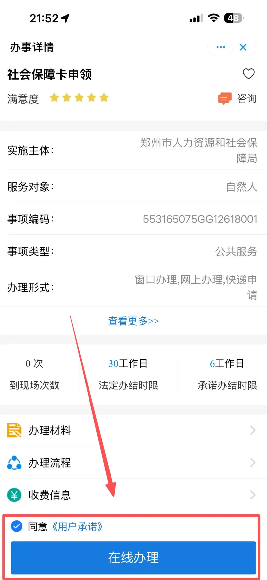2️⃣进入后选择【社保卡申领】,点击【在线办理】即可办理