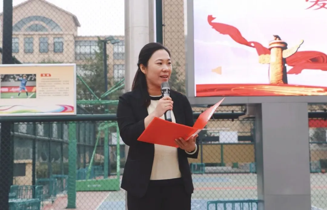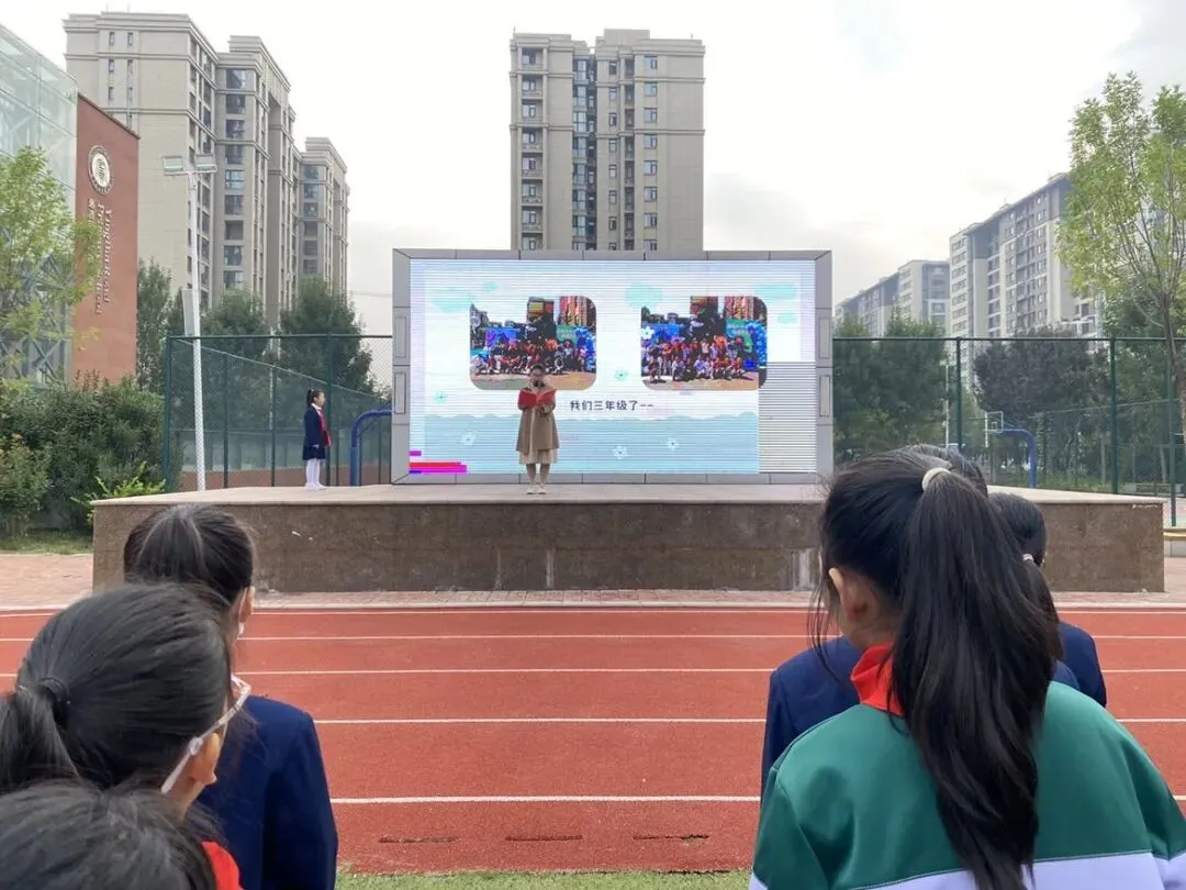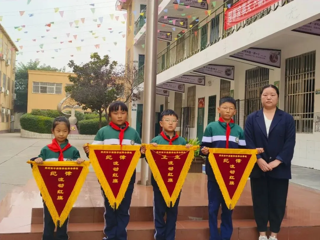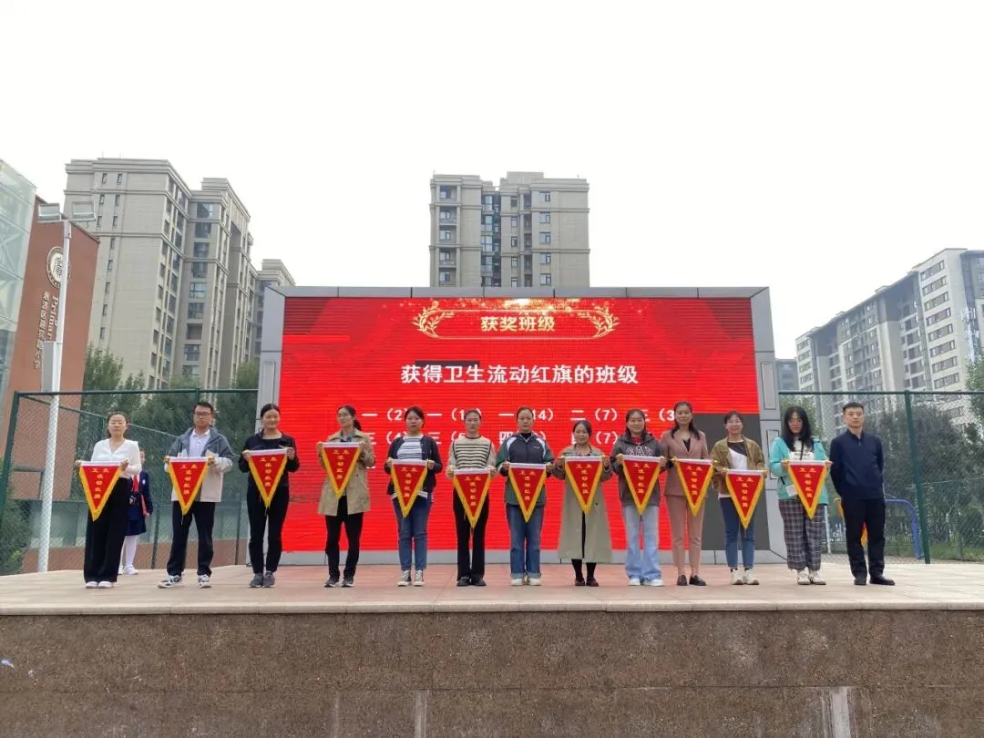 在仪式最后,颁发了文明、卫生、健康流动红旗,展示着各个班级积极向上的风貌。