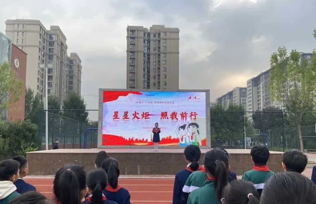 有一抹红,永不褪色,那是红领巾闪耀的颜色。有一种骄傲,永不落幕,那是成为少先队员的光荣。为庆祝少先队建队74周年,切实增强少先队员的光荣感和归属感,增强学校少先队的组织力量,10月9日,郑州四中实验学校开展“星星火炬,照我前行”主题升旗仪式。