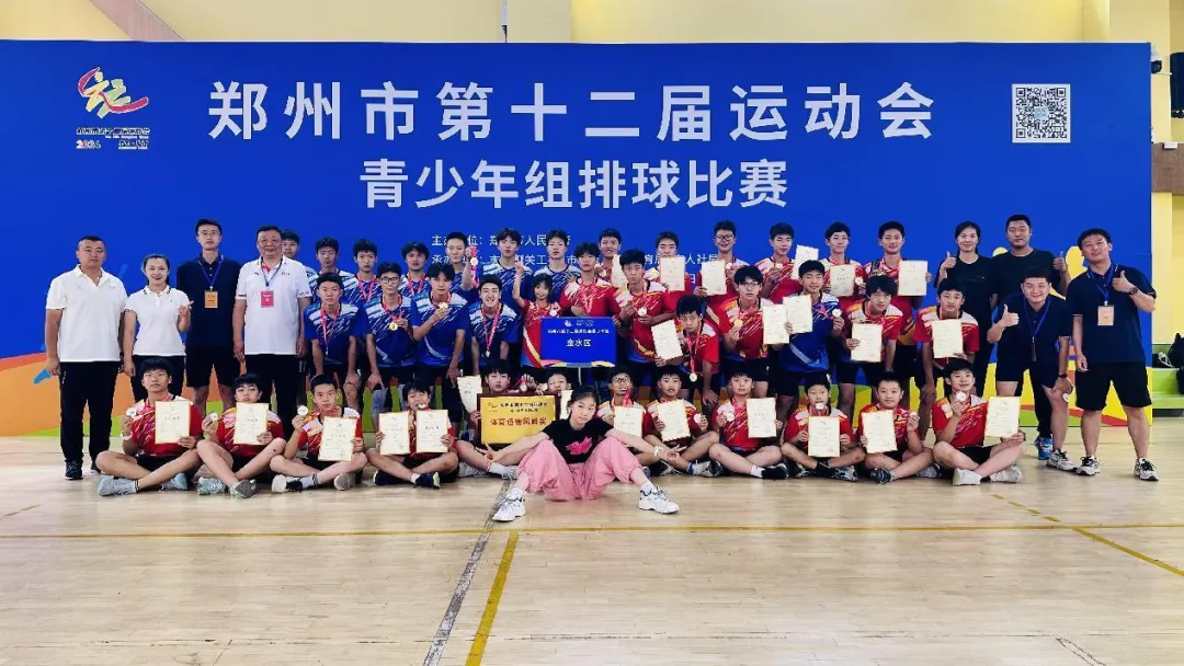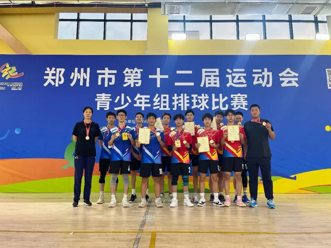 2024年6月30日—7月3号,郑州市第十二届运动会青少年组排球比赛男子甲组、乙组、女子乙组,在我校排球馆拉开帷幕,经过四天的激烈角逐,有我校运动员参加的金水区男子甲组、乙组分别以全胜战绩获得冠军,金水区获得体育道德风尚奖,由李校长作为金水区乙组领队上台领奖。