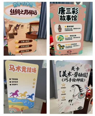 孩子们手持《骏马通关文牒》,自主挑战四大关卡,每通关一处就能收获专属“马蹄金” 印章。集齐印章就可兑换“神骏小使者” 纪念品。