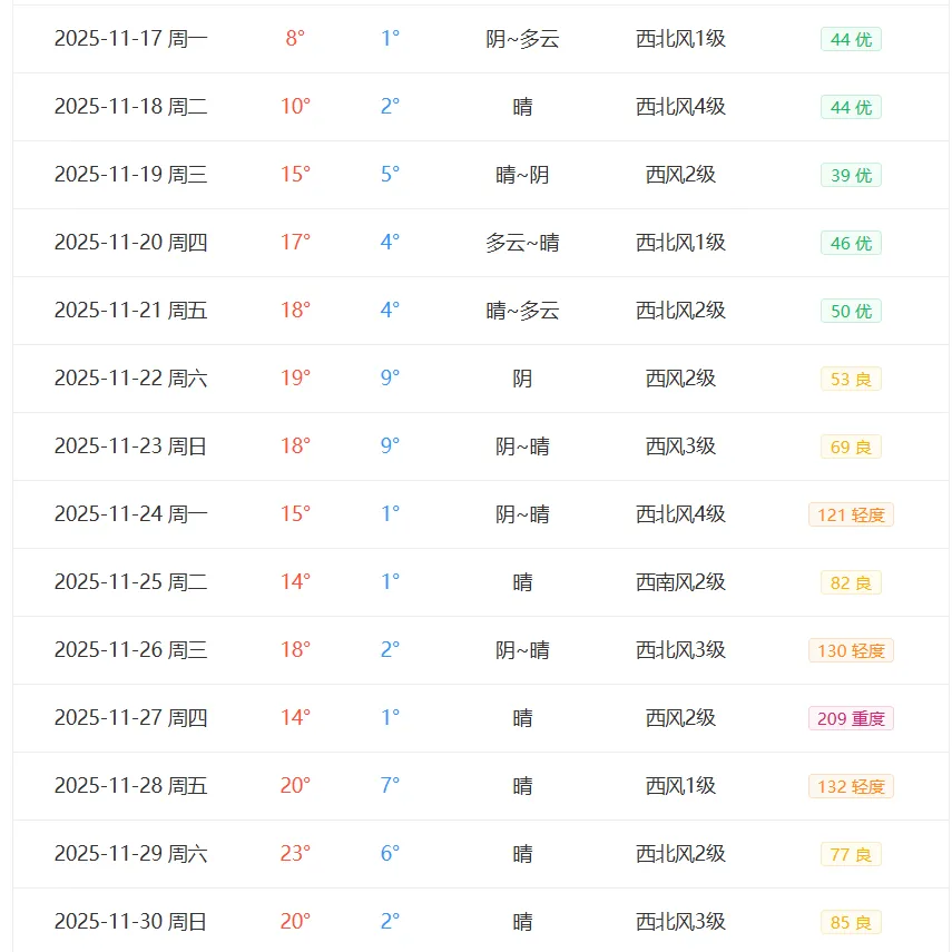 果不其然,打开手机软件,周二的天气重度污染,空气污染指数204。
