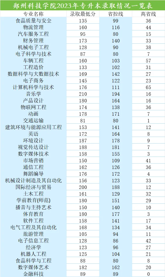 郑州科技学院2026年专升本招生专业及近三年录取分数线