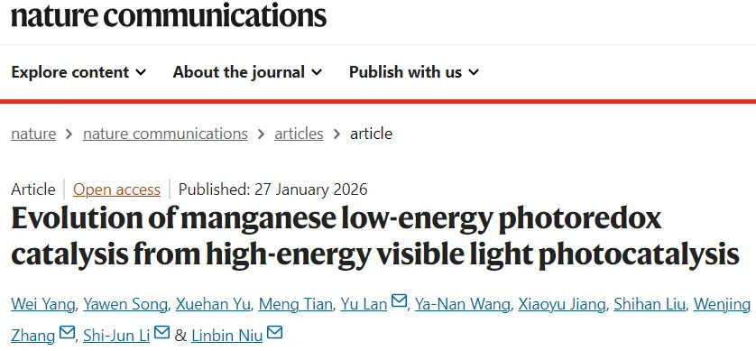 Evolution of manganese low-energy photoredox catalysis from high-energy visible light photocatalysis. Nat. Commun., (2026). https://doi.org/10.1038/s41467-026-68837-y.