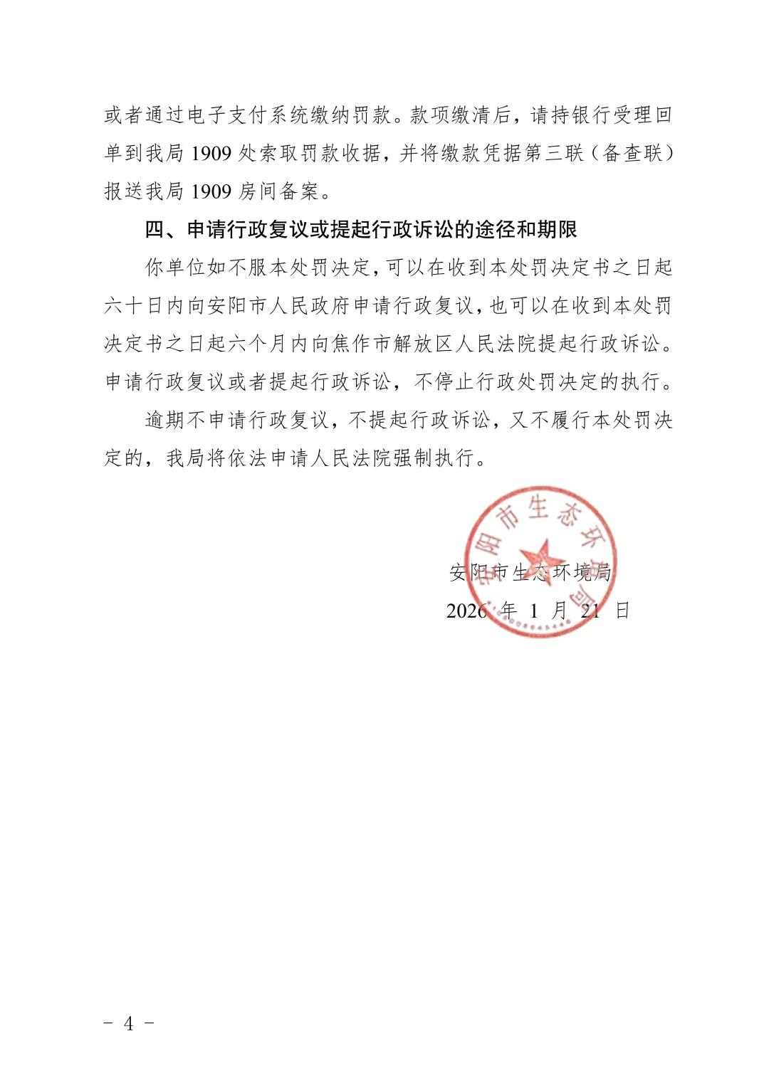>安阳市生态环境局林州分局行政处罚决定书