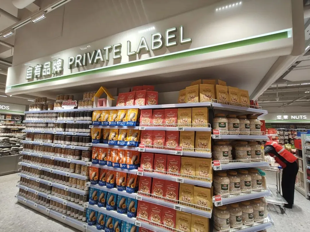 我们看看同行怎么做的,见下图,把广告做成条幅,整齐的挂在展区上方。 7,自有品牌区是最让我失望的展区,根本没有突出大张自有品牌的特色,只是简单的堆砌,选品单一。