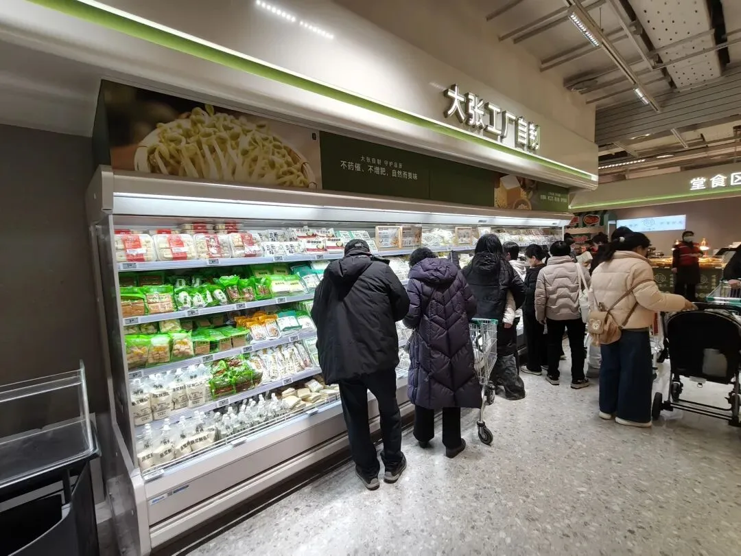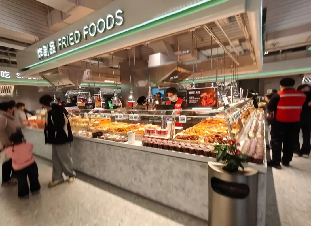 8,熟食区,品类丰富,但就是视觉冲击力还欠那么一点点火候,完全可以在射灯上前方设置大型投影屏。见下方第二图,同行的显示屏滚动广告很赞。 9,长申精品店,在气氛烘托上没有太用心,卖场里没有放背景音乐,没有促销有力互动(比如涧西盛德美的小丑给小朋友送气球),没有优质的服务,没有超市外的方位导引。太多的没有没有。卖场里就象一碗温吞水,没有完全激发顾客的购物欲。 没有热点,没有朝气,这是王府井长申留给我的第一印象,因为篇幅有限,本文不再一一列举。大张作为豫西生鲜王,曾经神一般的存在,但是进入2026年,洛阳超市业可能进场的重量级选手会越来越多,比如麦德龙,比如鲜风生活,就是眼下在解放路一公里商圈内,567,李楼特卖仓全是大体量。大张人如果没有忧患意识,是很可怕的现象。 王府井长申之行,有惊喜,比如熟食区产品丰富度上的轻车熟路,比如大张工厂自制食品区的冷柜存放,比如烘焙区的物美价廉,比如抖音直播间的全天滚动播放(门口那几个抖音小姐姐太敬业了),比如年轻客群越来越多。 也有惊吓,作为大张门店品牌的王炸之一,西工王府井长申在细节上仍有较大提升空间,熟食区的服务应向涧西长申看齐,堆头摆放应向西工金纱长申看齐,卖场管理应向涧西盛德美看齐。如果有可能的话,在卖场主通道和卖场出口放几张顾客休息椅。在卖场门口设店长现场服务台,在卖场门口设扫码送购物袋服务,以上观点难免有偏颇之处,海涵。 对了,九块九一盒的砂糖橘和23一公斤的土公鸡都很好吃。 预祝王府井长申精品超市1月29日正式开业销售额一路长虹。
