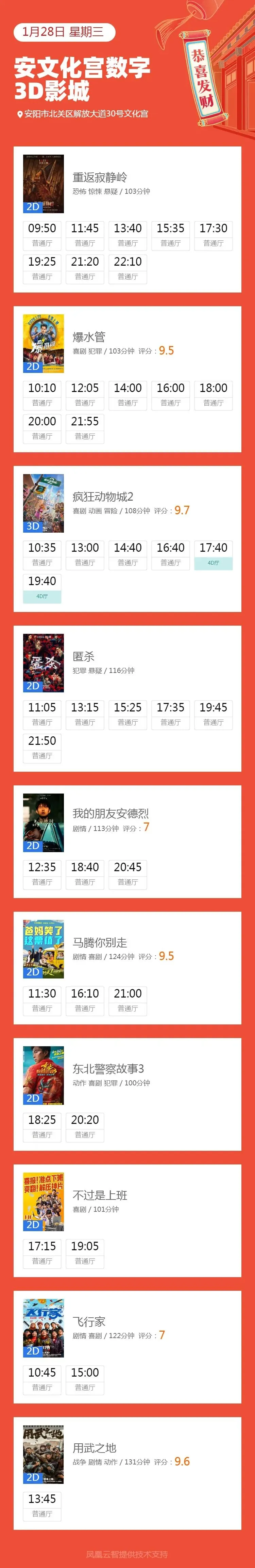 >安阳市工人文化宫数字3D影城1月28日影讯