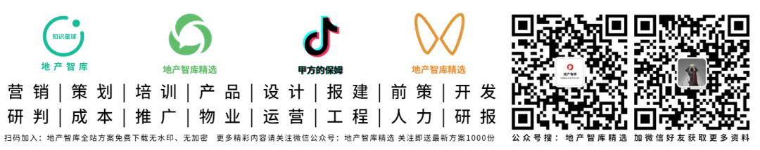 案例不够看?加入地产智库会员(已更新超过120W+资料)28大板块128类线条地产精品资料及方案!一站式的线上资料库,基本满足地产人99%的学习参考需求!
