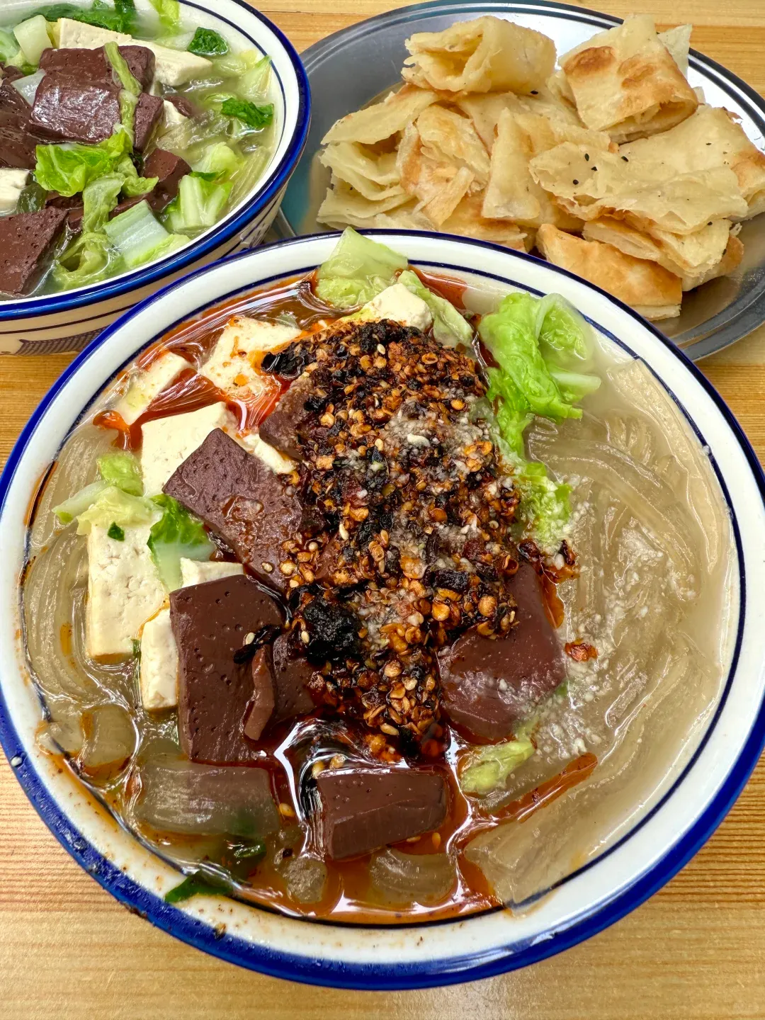 早上,街口胡辣汤最能提神。胡椒味直冲脑门,一口下去整个人都醒了;配上油馍头,外脆里软,嚼着有劲。中午去老庙街吃道口烧鸡,卤香透骨,带点甜口,再蘸点辣椒面刚好。晚上别赶行程,找家馆子要“三不沾”。鸡蛋+豆粉+糖,软糯不腻,搅的时候要稳,火候一急就糊。