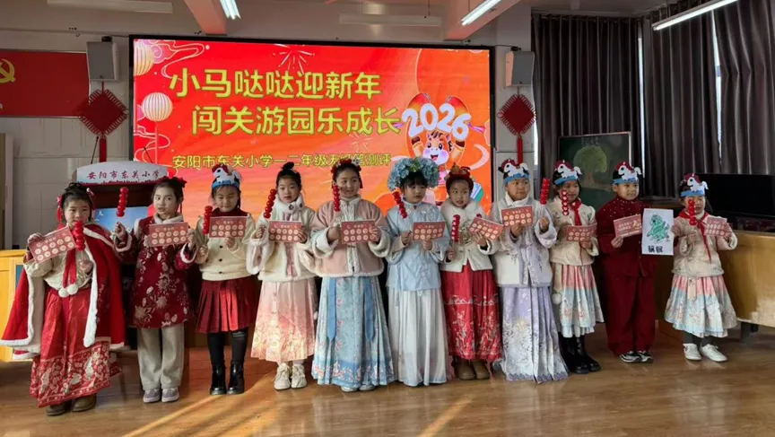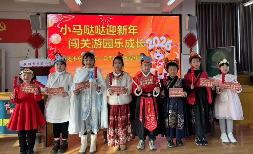 童趣闯关显素养,不着笔墨也生花。1月27日,安阳市东关小学一、二年级的孩子们迎来了一场别开生面的期末测评游园会,一系列丰富多彩、充满奇思妙想的游园活动欢乐开场。孩子们手持闯关卡,在一个个精心设计的游戏关卡中展示所学,在玩中学,在乐中评,在趣味体验中展现综合素养。