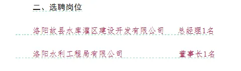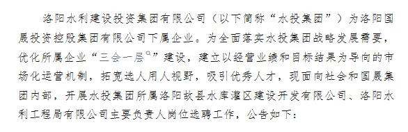 >洛阳水利建设投资集团有限公司所属企业选聘公告【至1.30】