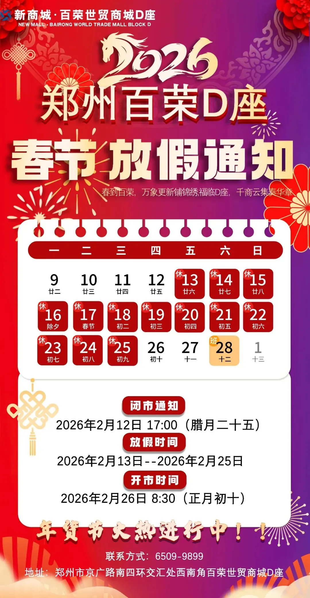 郑州百荣D座2026春节放假通知