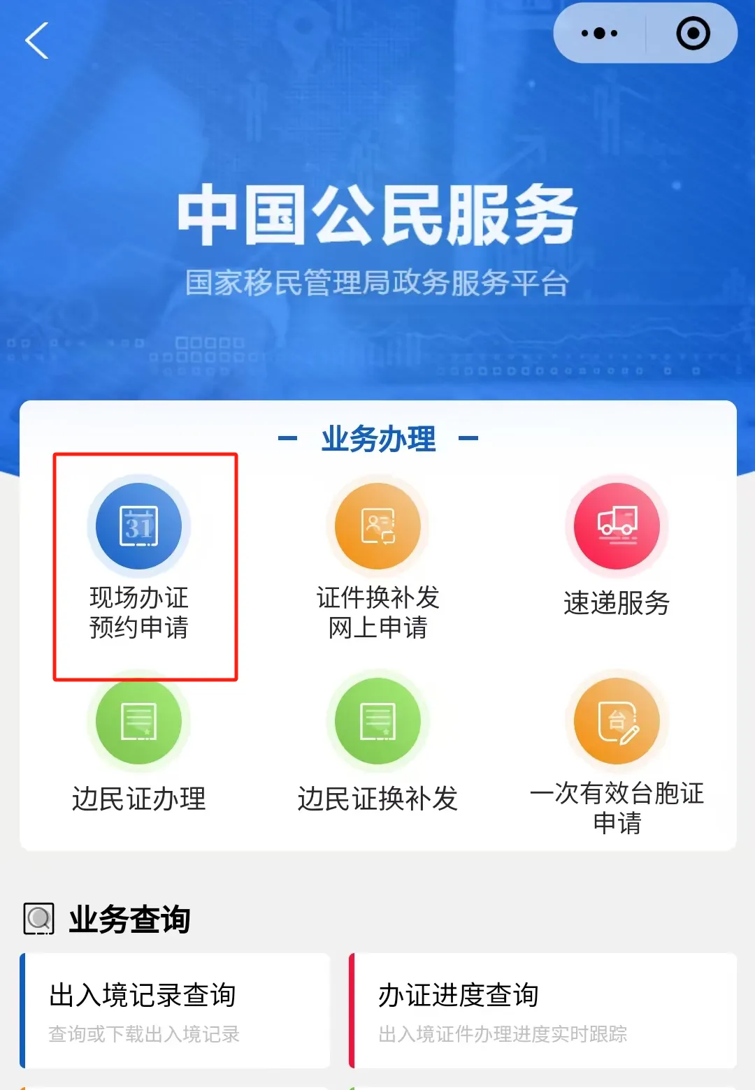 预约入口、办理进度查询