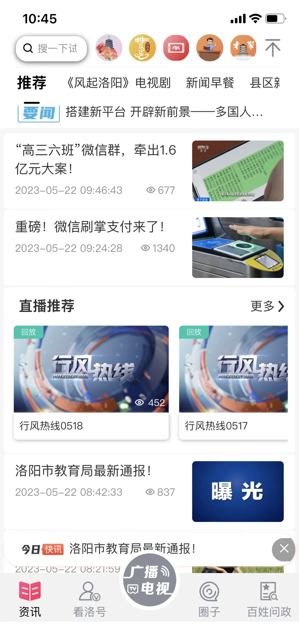 如果您没有时间看直播,可以登陆看洛APP点击“广播电视”板块,找到“电视直播”就可以看到每天的《行风热线》的直播了。