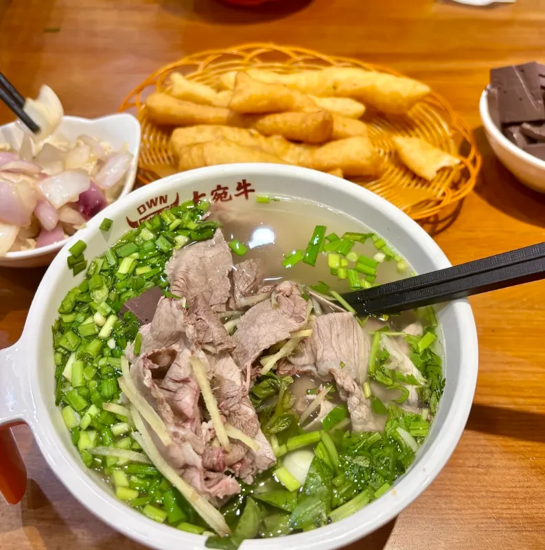 【南阳牛肉汤·赏味】做法其实讲究个“笨”功夫。牛骨得敲断,大火滚煮整整一夜,把骨髓里的油全逼进汤里,汤色得白得像奶。肉要切得薄如蝉翼,碗底铺上肉,滚烫的骨汤“哗”地冲下去,肉瞬间烫熟,撒上一把翠绿的葱花香菜,再淋一勺红油。汤一喝,人就醒了。