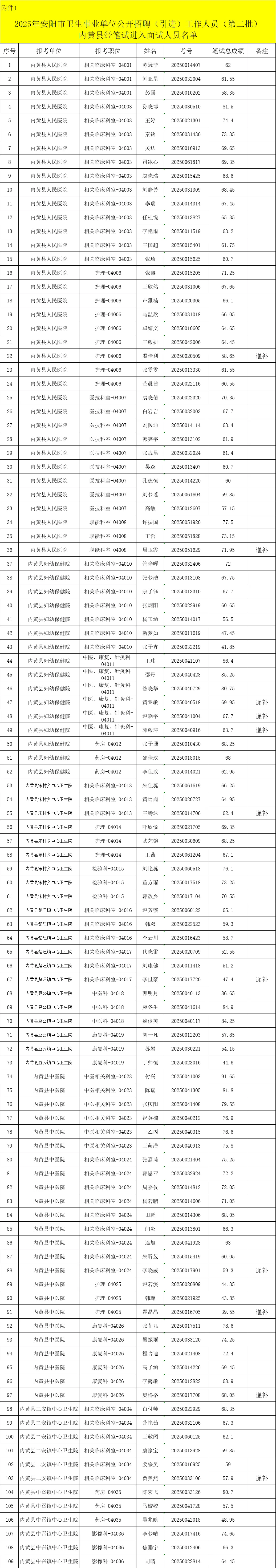 2025年安阳市卫生事业单位公开招聘(引进)工作人员(第二批)面试资格确认工作现已结束,现将进入面试人员名单(见附件)及有关事项通知如下: